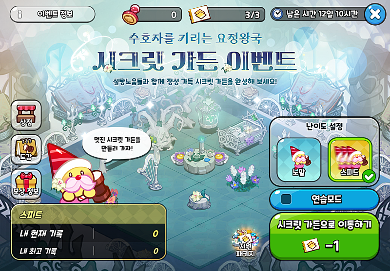 이번 시크릿 가든에서는 노말 모드와 및 스피드 모드가 제공됩니다.