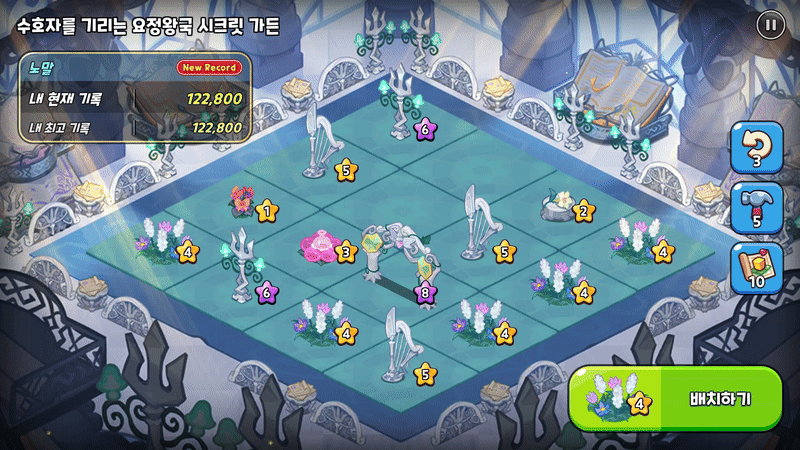 시크릿 가든에서는 판 위에 건물들을 배치한 후, 이를 합치고 또 합쳐서 더욱 높은 점수와 멋진 가든을 만드는 것이 목표랍니다. 설탕노움들과 함께 정성 가득한, ‘수호자를 기리는 요정왕국 시크릿 가든’을 완성해보세요!