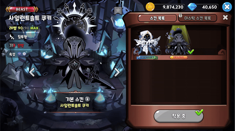⦁ 새하얀 갑옷과 외눈 가면으로 반죽을 가리고, 영혼이 겪는 처음이자 마지막 여행을 호위하겠노라고 손을 내미는 사일런트솔트 쿠키의 전설 스킨, ‘망자를 인도하는 백골 기사’