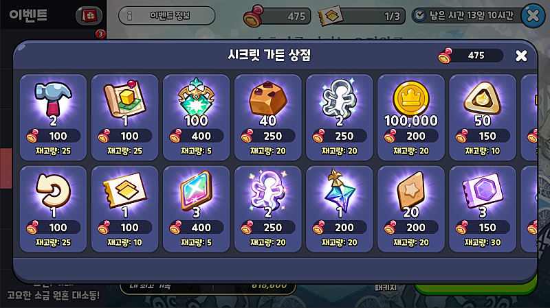⦁ 시크릿 가든 플레이를 통해 획득한 ‘설탕노움의 칭찬 도장’을 모아 상점에서 다양한 보상을 구매할 수 있습니다.