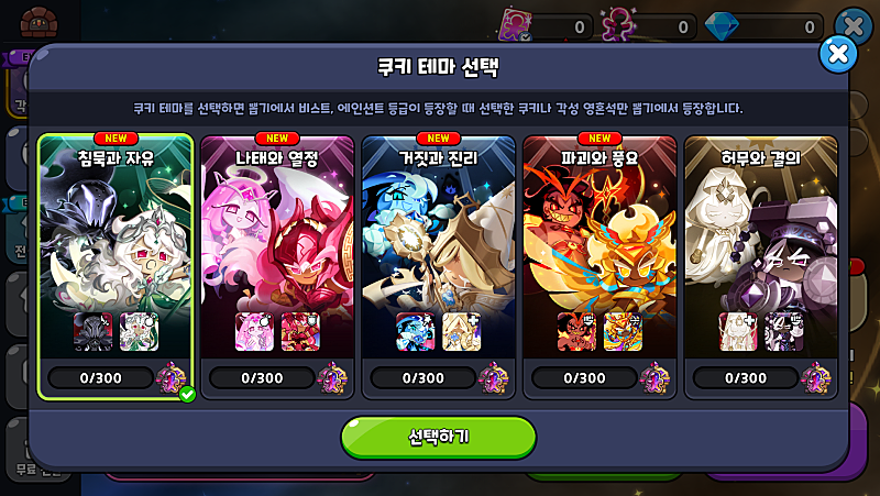 ⦁ 원정 쿠키는 파티에 있는 쿠키와 중복으로 선택할 수 없습니다.